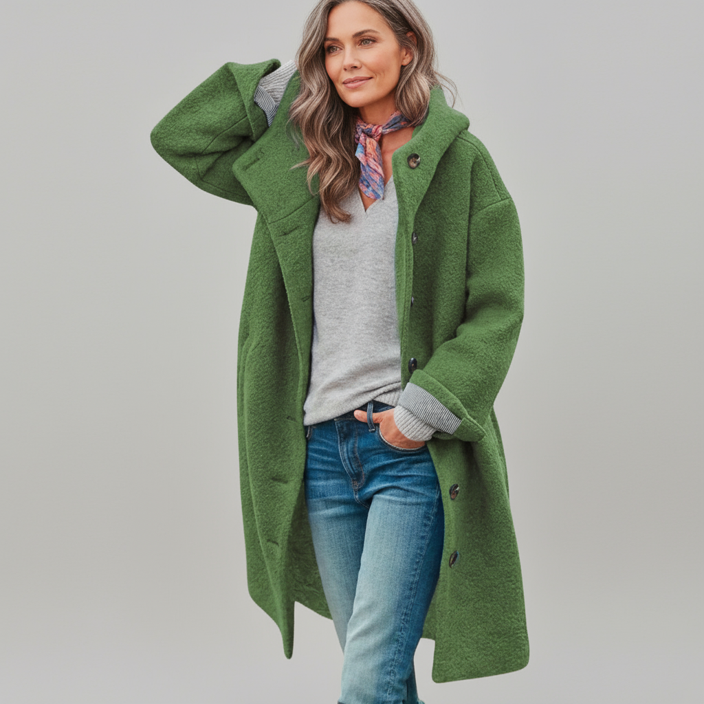 Leona Women’s Casual Wool Coat | Oversized Button-Up Jacket